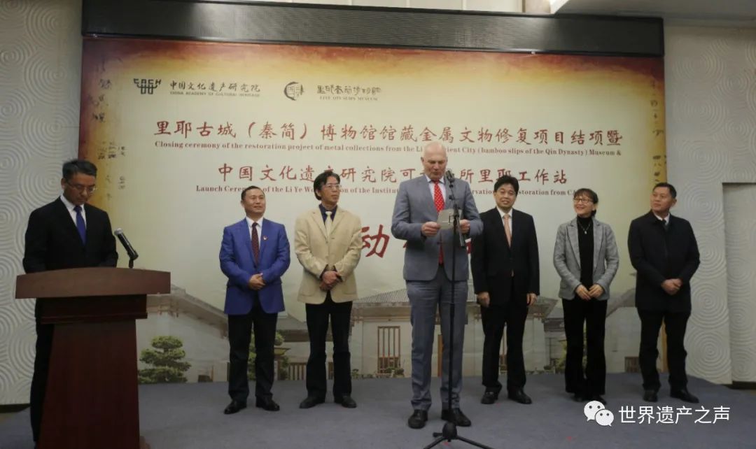 3月17日,“里耶古城(秦简)博物馆藏青铜文物保护修复项目”完结仪式与修复成果展在里耶博物馆举行,“中国文化遗产研究院可移动所—里耶工作站”同时挂牌。瑞士驻华大使白瑞谊出席仪式并参观、查看修复项目的执行情况与取得的保护效果,大使秘书与文化媒体处主任随行。国家文物局、中国文化遗产研究院、湖南省政府、文物局、湘西州政府、文旅局以及龙山县相关领导出席活动。