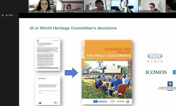 “世界遗产影响评估”导师培训班于2023年5月8日至10日举行。此次培训由国际文物保护与修复研究中心(ICCROM)和世界自然保护联盟(IUCN)旗下的世界遗产领导力项目,以及联合国教科文组织亚太地区世界遗产培训与研究中心上海中心(WHITRAP Shanghai)共同组织。此次为期三天的培训班采取国际线上会场与面向中方参会人员的上海中心线下会场相结合的举办方式,其中线下会场增加了案例分享与《世界遗产背景下的影响评估指南和工具包》中文版审校两大特别环节。此次培训共邀请了在世界遗产影响评估领域具有实践与研究经验的8名导师和25名来自18个国家的参会人员,包括中国、日本、韩国、马来西亚、菲律宾、印度、缅甸、挪威、阿尔巴尼亚等,其中来自亚太地区的参会者占比达到80%。