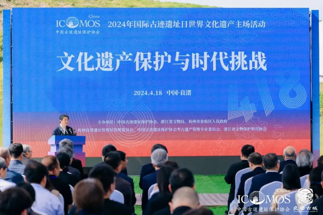 4月18日,由中国古迹遗址保护协会、浙江省文物局、杭州市余杭区人民政府共同主办,杭州良渚遗址管理区管理委员会、中国古迹遗址保护协会考古遗产管理专业委员会、浙江省文物保护利用协会共同承办的2024年国际古迹遗址日世界文化遗产主场活动在良渚古城遗址成功举行。